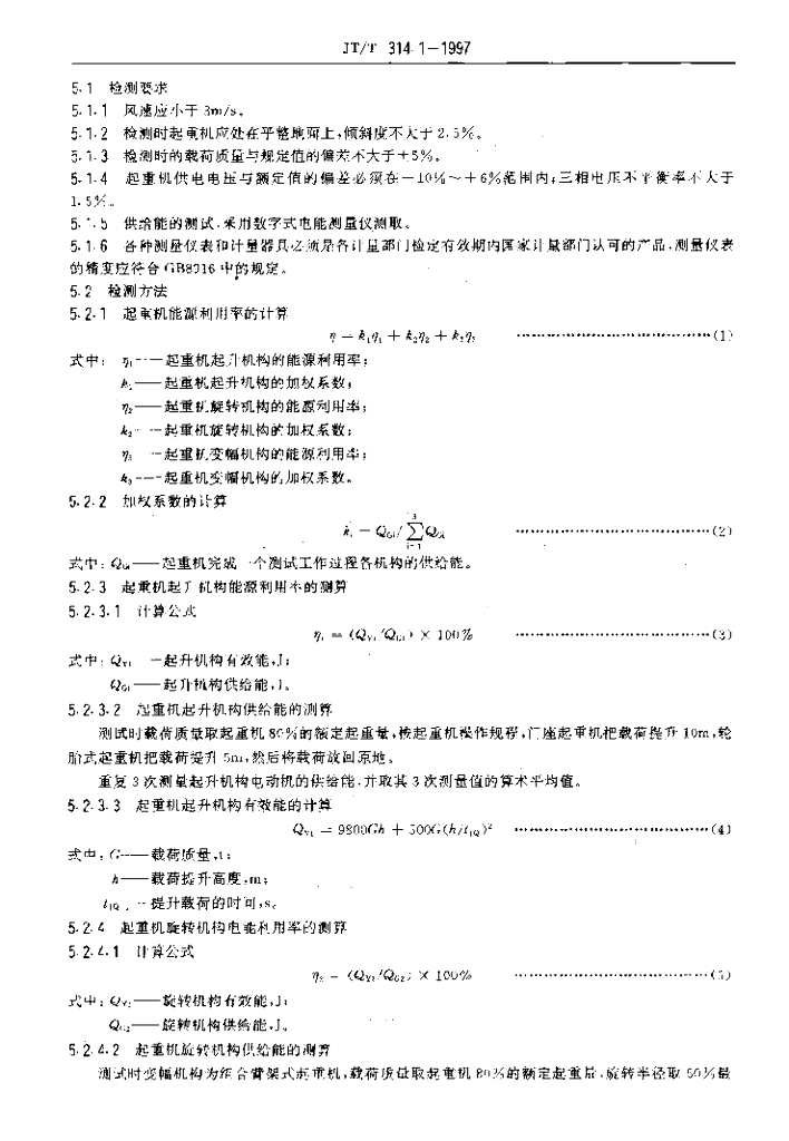 JT/T 314.1-1997 港口电动起重机能源利用检测规程 第1部分:臂架型起重机