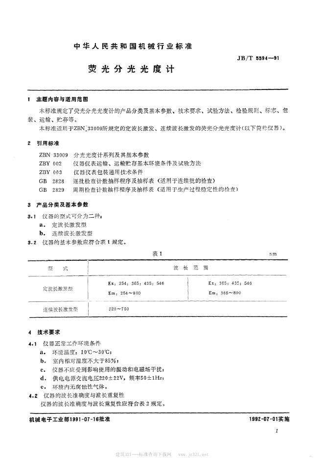 JB/T 5594-1991 荧光分光光度计