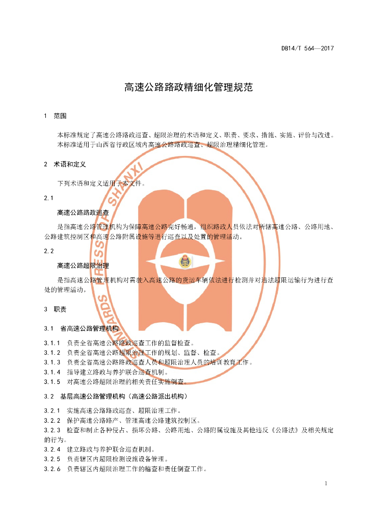 DB14/T 564-2017 高速公路路政精细化管理规范