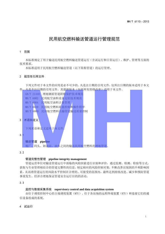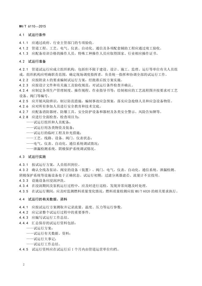 MH/T 6110-2015 民用航空燃料输送管道运行管理规范