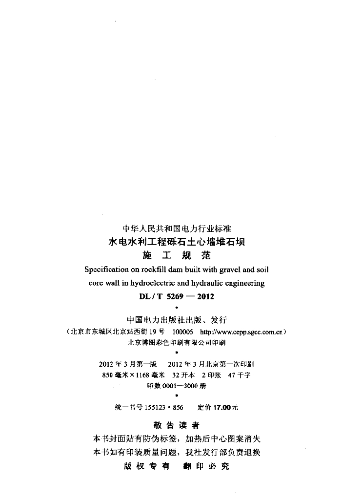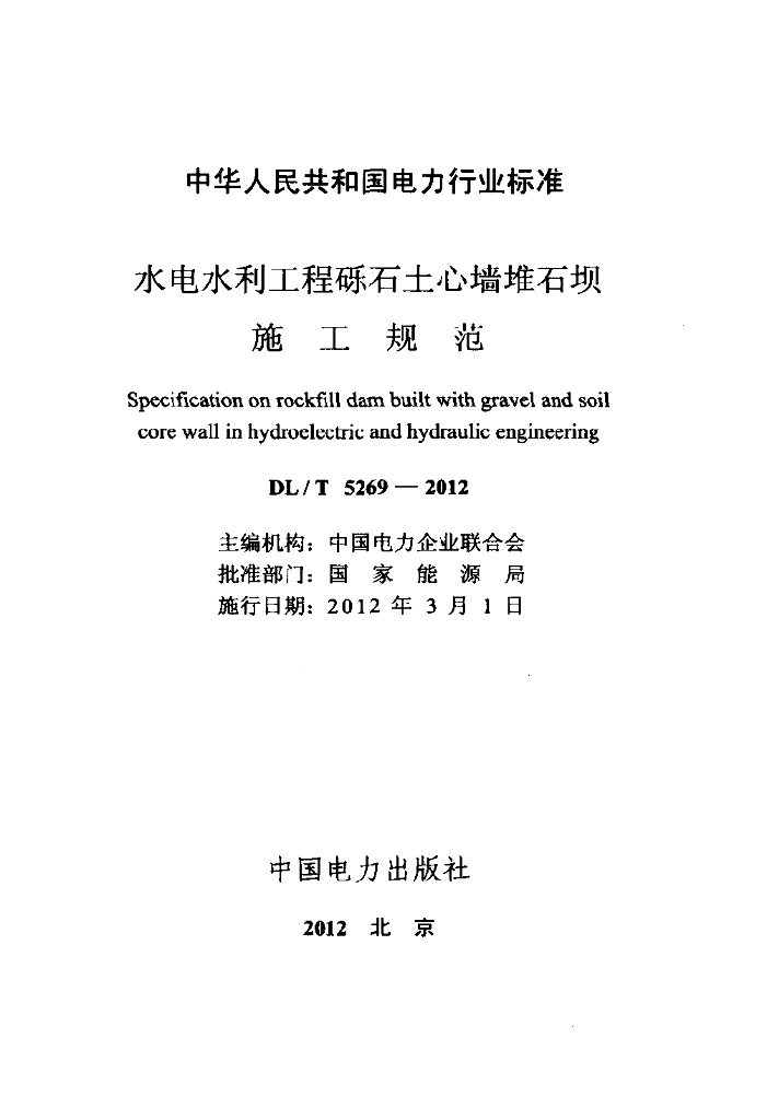 DL/T 5269-2012 水电水利工程砾石土心墙堆石坝施工规范