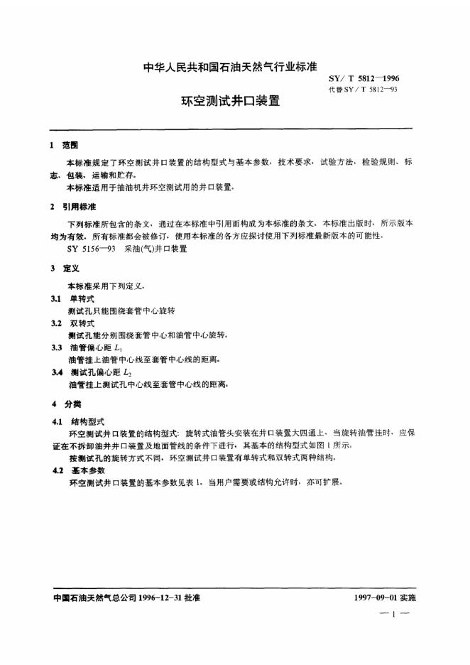 SY/T 5812-1993 环空测试井口