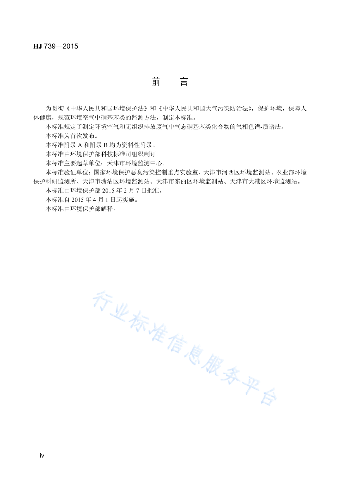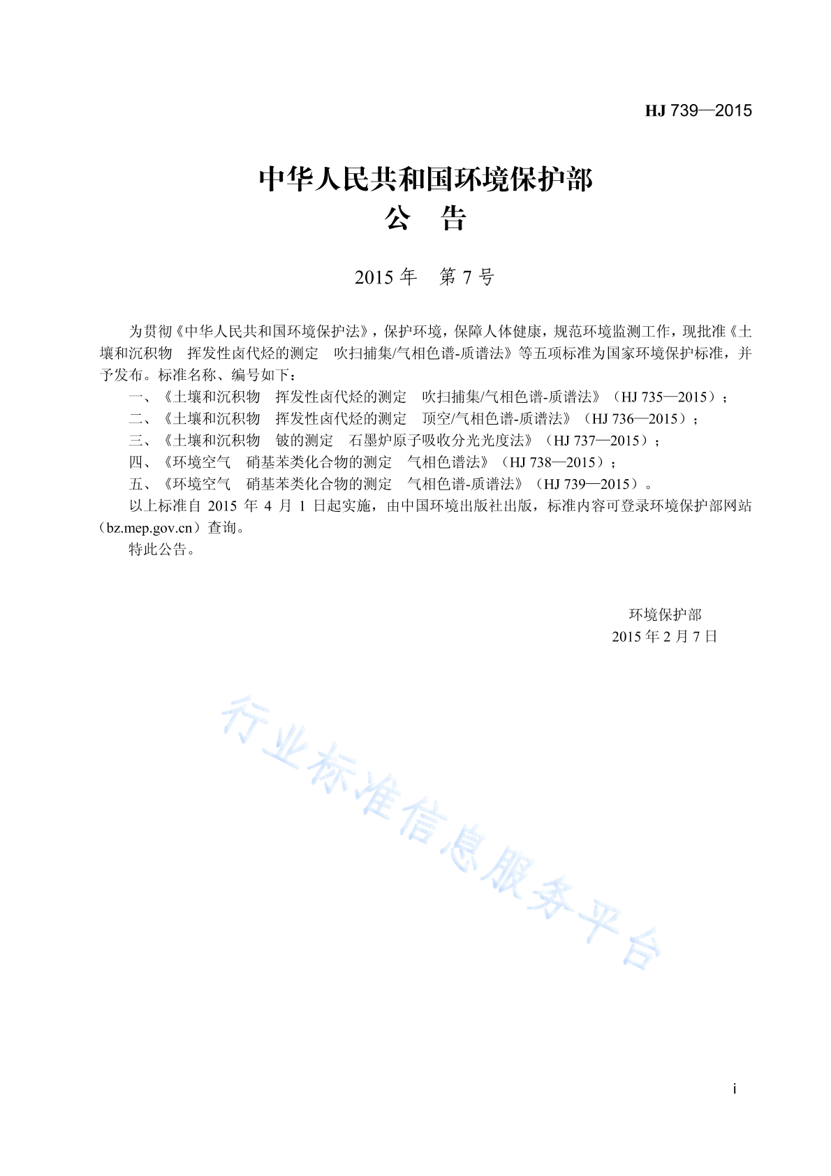 HJ 739-2015 环境空气 硝基苯类化合物的测定 气相色谱-质谱法