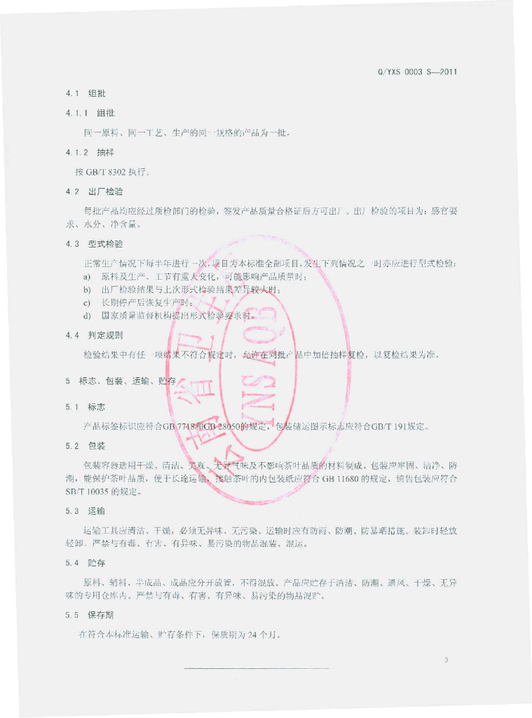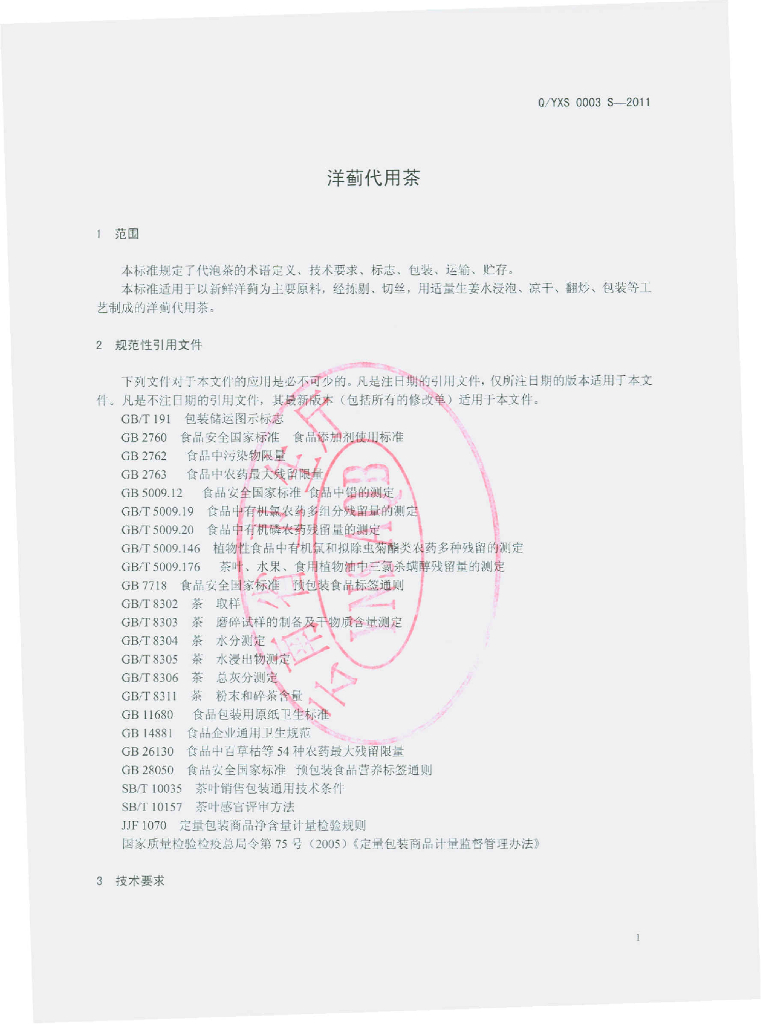 Q/YXS 0003S-2012 洋蓟代用茶
