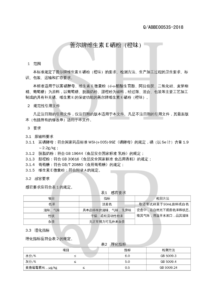Q/ABBE 0053S-2018 善尔牌维生素E硒粉(橙味)