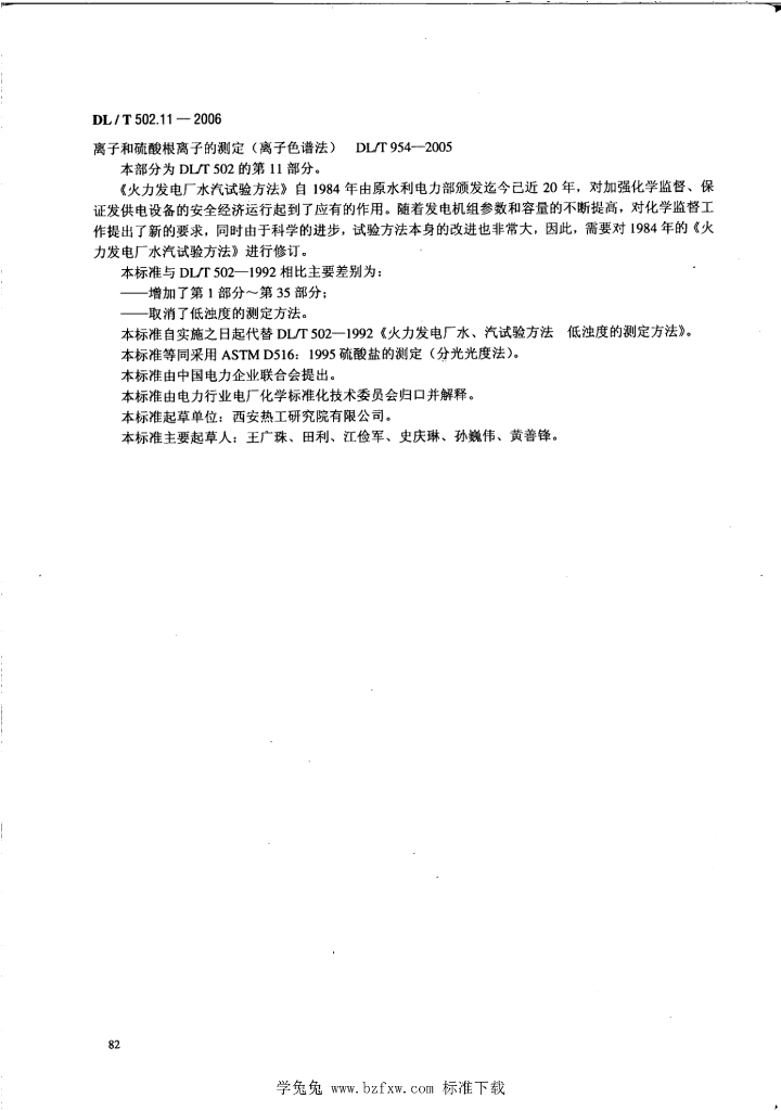 DL/T 502.11-2006 火力发电厂水汽分析方法 第11部分:硫酸盐的测定(分光光度法)
