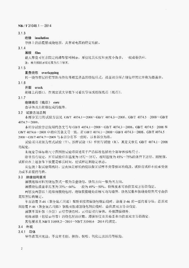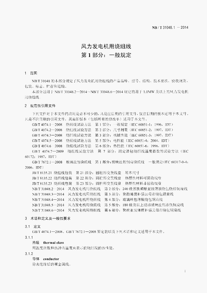 NB/T 31048.1-2014 风力发电机用绕组线 第1部分:一般规定