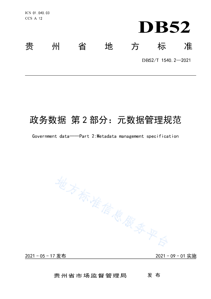 DB52/T 1540.2-2021 政务数据 第2部分:元数据管理规范