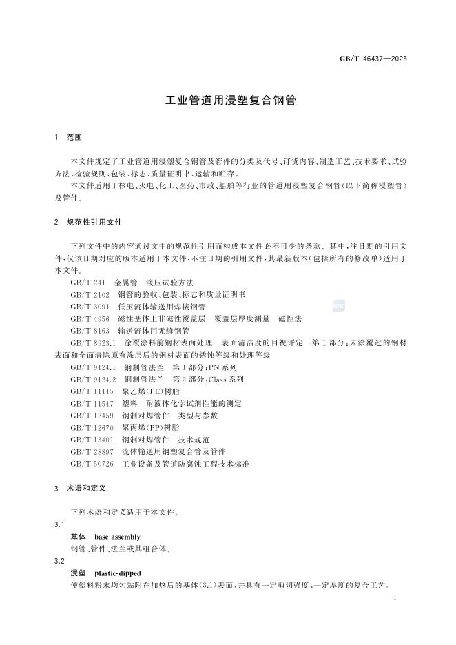 GB/T 46437-2025 工业管道用浸塑复合钢管