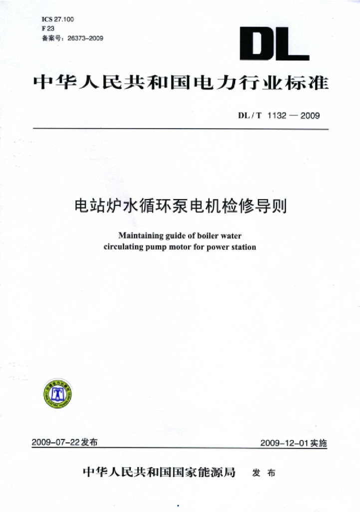 DL/T 1132-2009 电站炉水循环泵电机检修导则