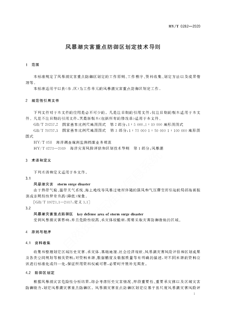 HY/T 0282-2020 风暴潮灾害重点防御区划定技术导则 (原名:海洋灾害重点防御区划定技术导则第1部分:风暴潮)