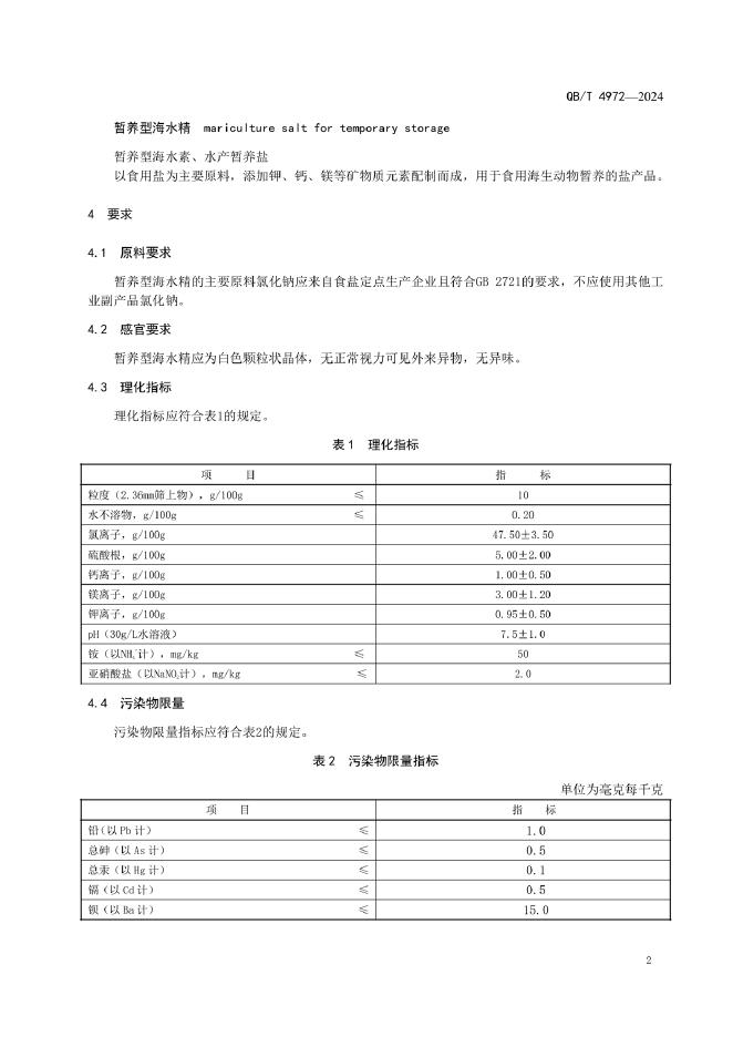 QB/T 4972-2024 暂养型海水精