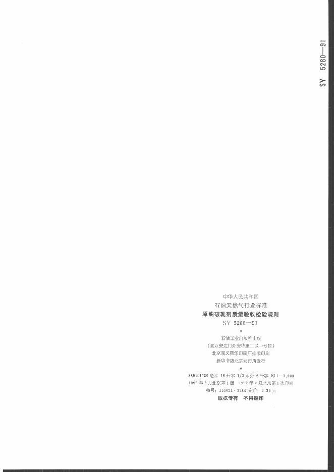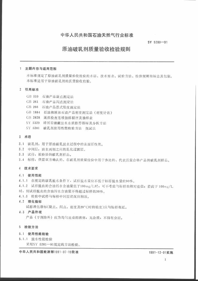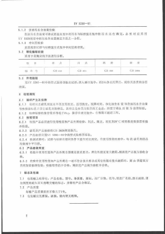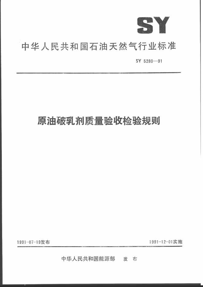 SY 5280-1991 原油破乳剂质量验收检验规则