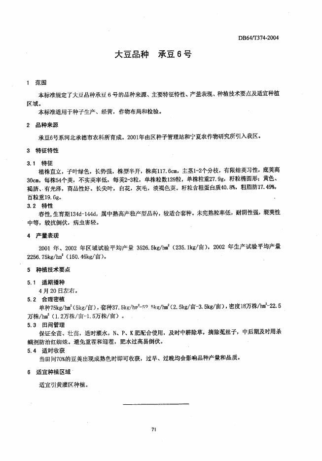 DB64/T 374-2004 大豆品种 承豆6号