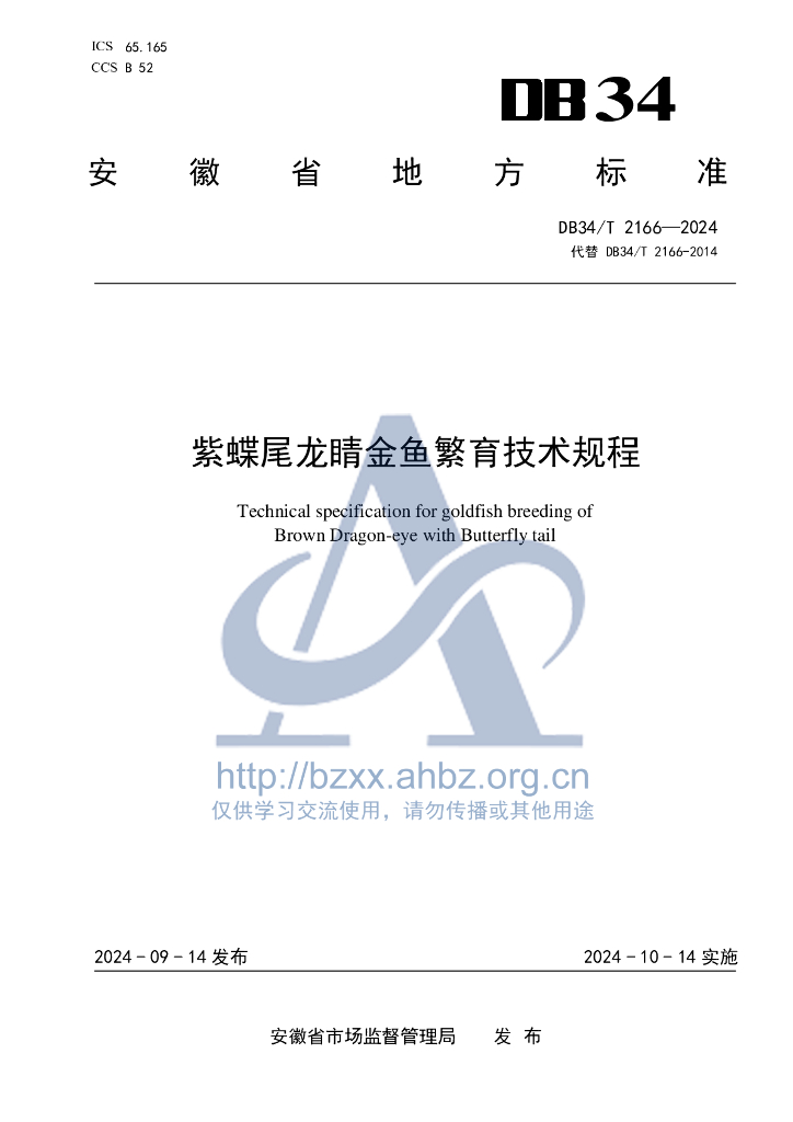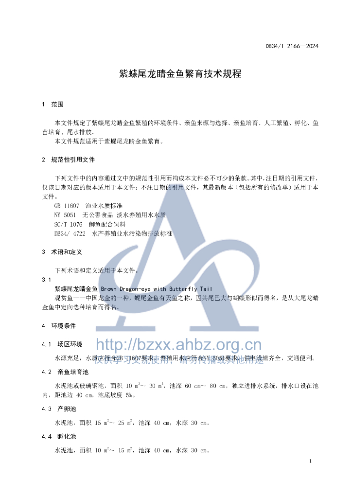 DB34/T 2166-2024 紫蝶尾龙睛金鱼繁育技术规程