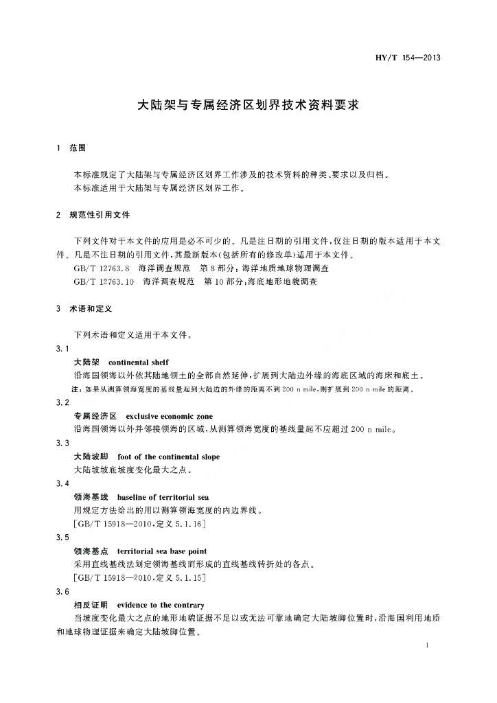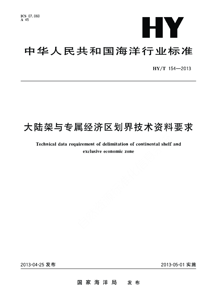 HY/T 154-2013 大陆架与专属经济区划界技术资料要求