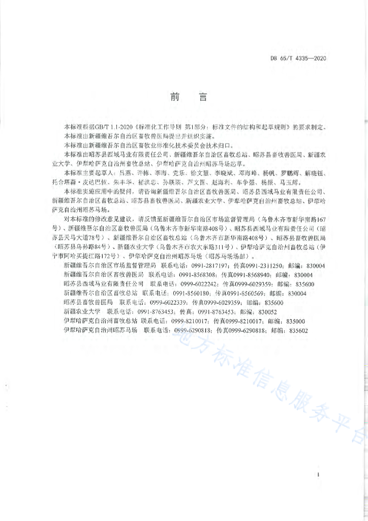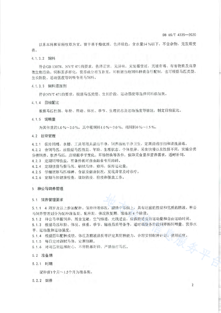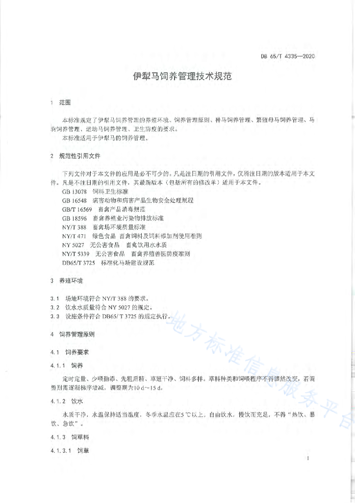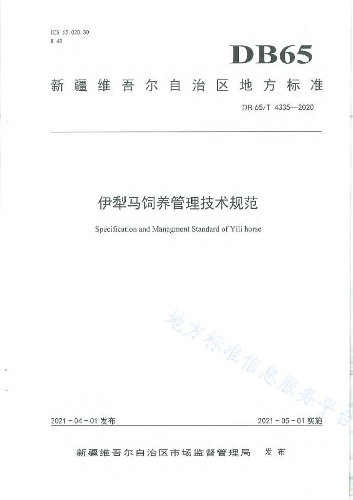 DB65/T 4335-2020 伊犁马饲养管理技术规范