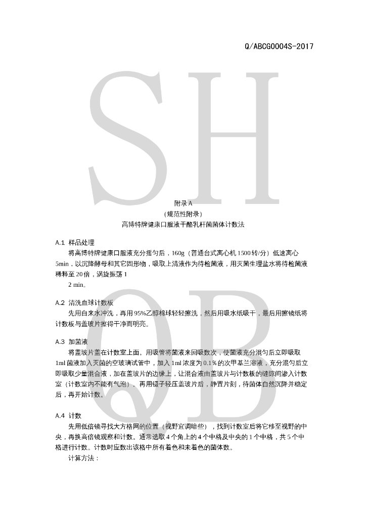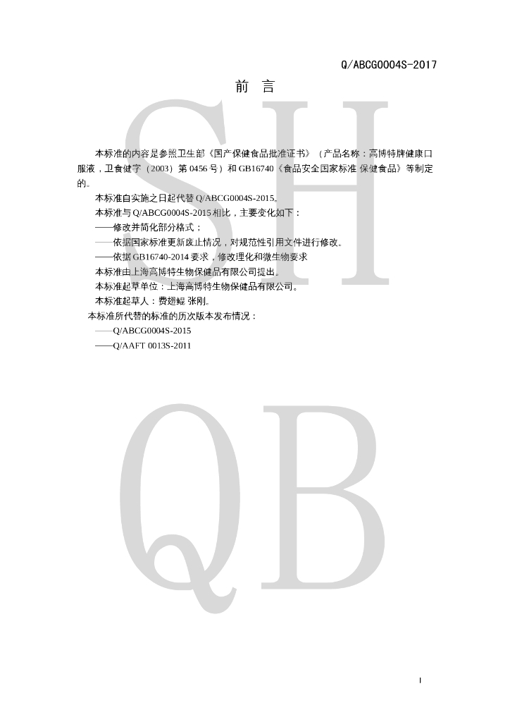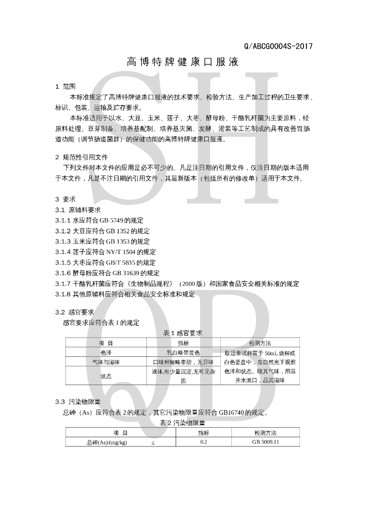 Q/ABCG 0004S-2017 高博特牌健康口服液