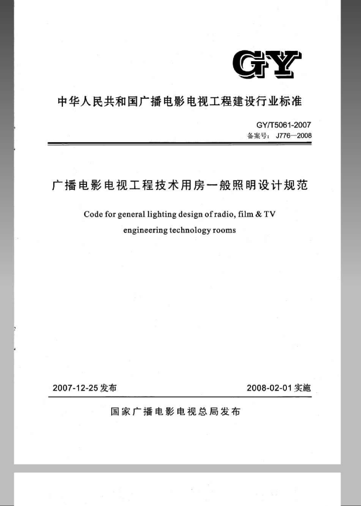 GY/T 5061-2007 广播电影电视工程技术用房一般照明设计规范