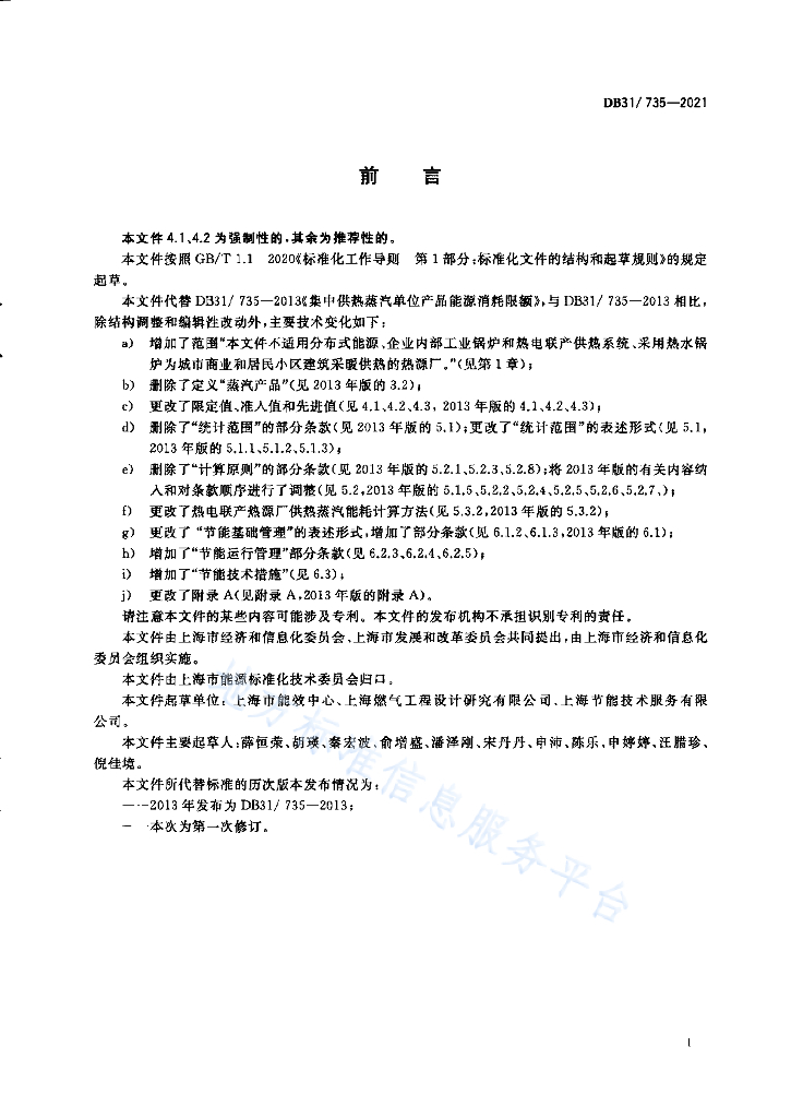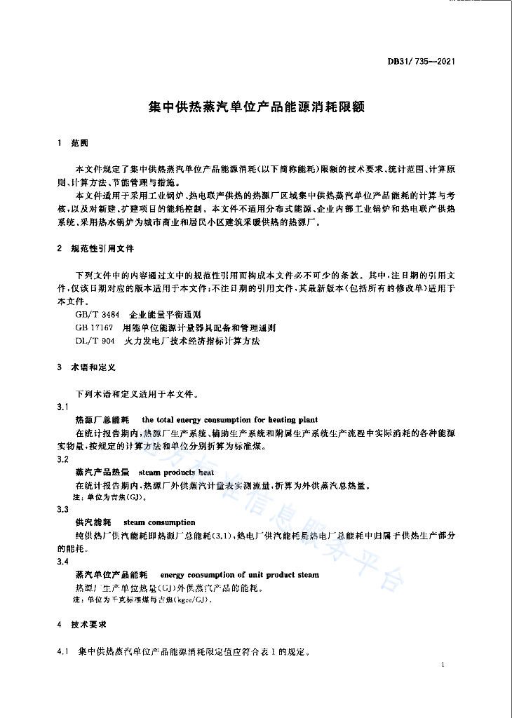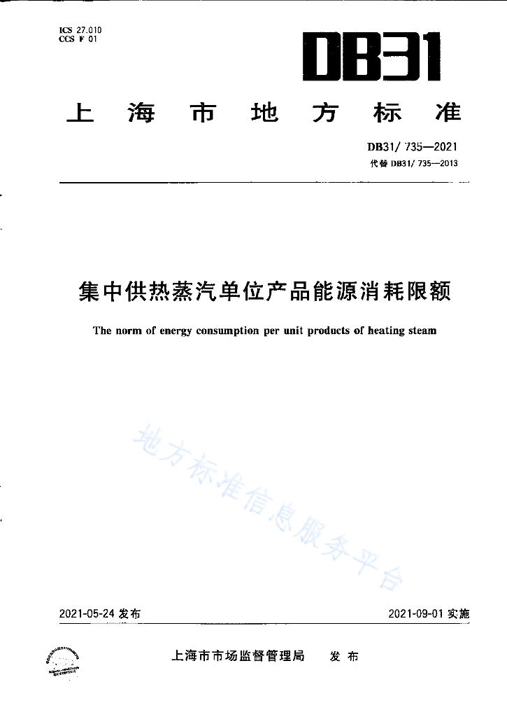 DB31/T 735-2021 集中供热单位产品能源消耗限额
