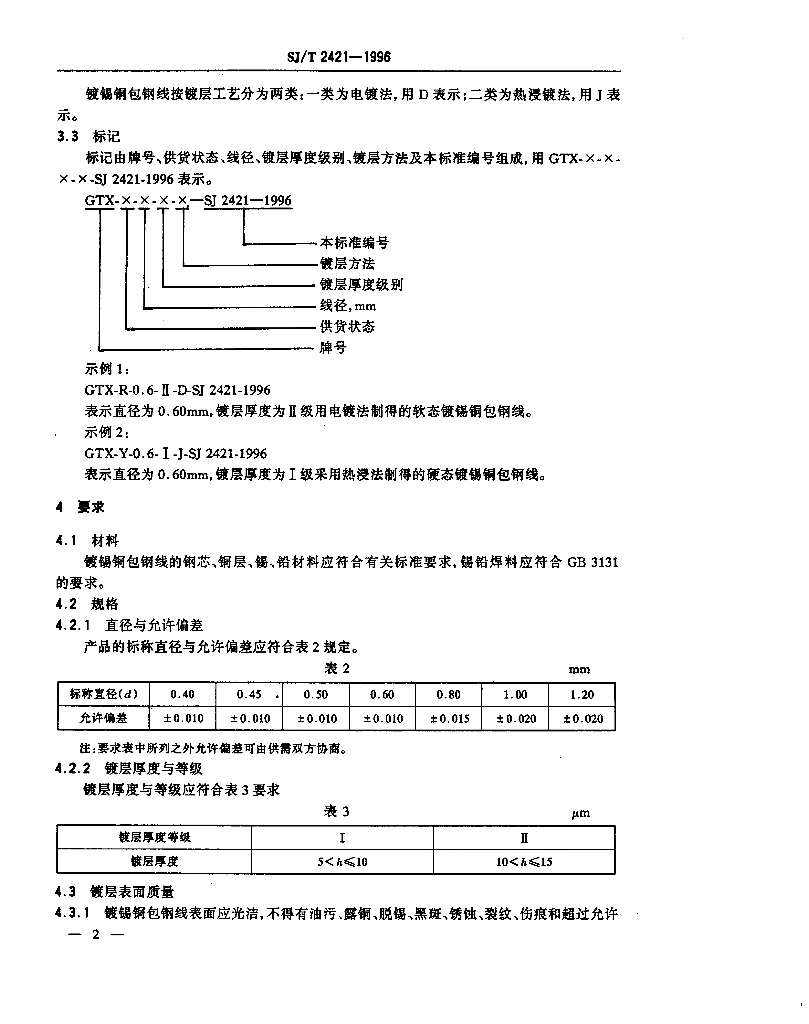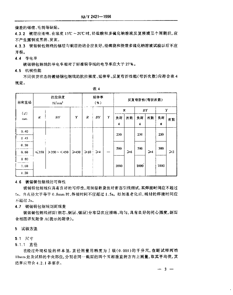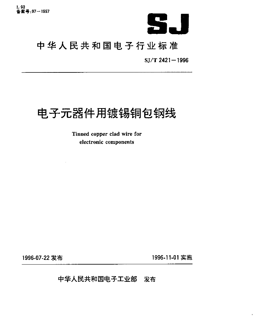 SJ/T 2421-1996 电子元器件用镀锡铜包钢线
