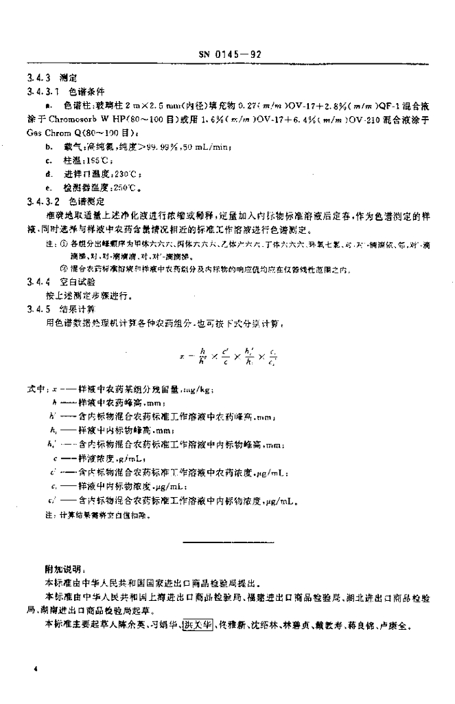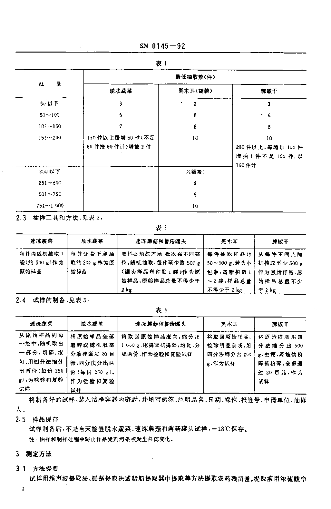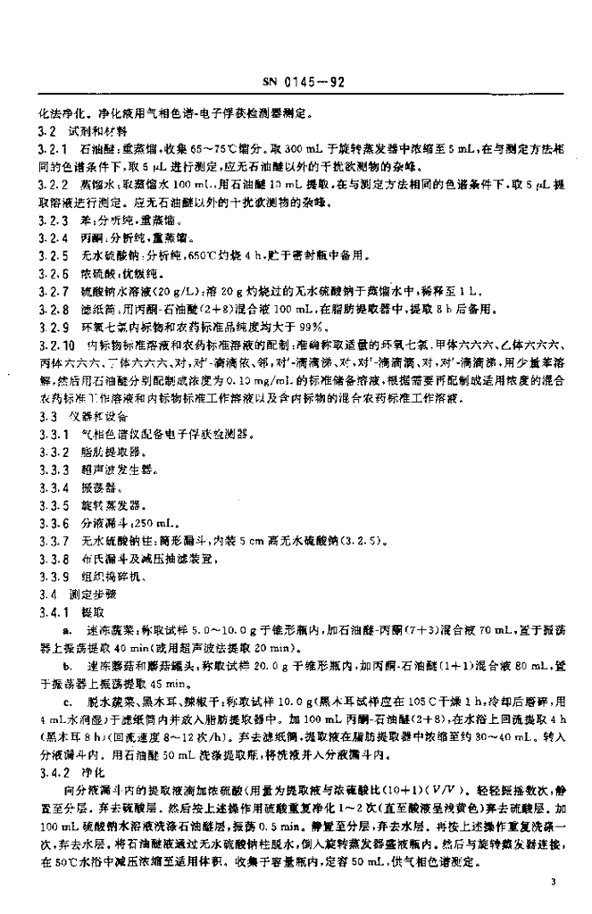 SN 0145-1992 出口蔬菜及蔬菜制品中六六六、滴滴涕残留量检验方法