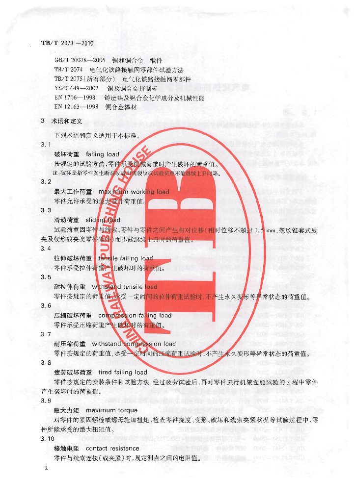 TB/T 2073-2010 电气化铁路接触网零部件技术条件