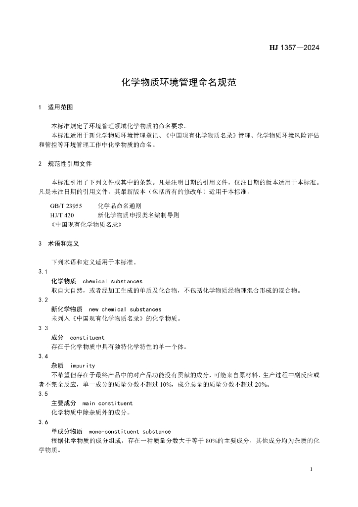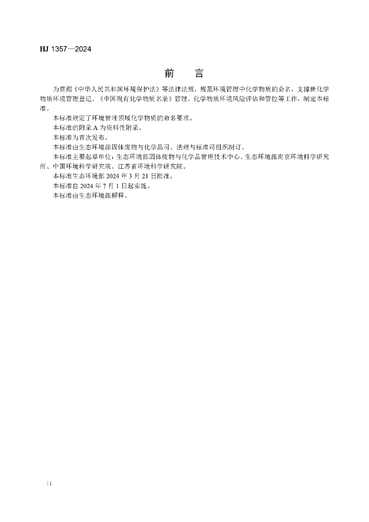 HJ 1357-2024 化学物质环境管理命名规范
