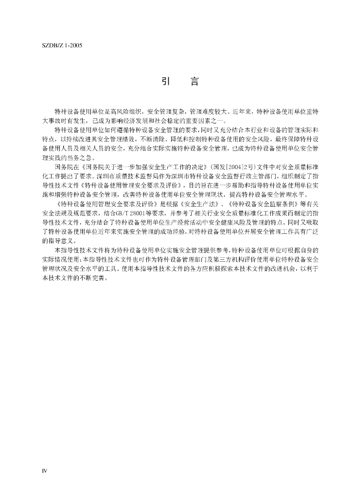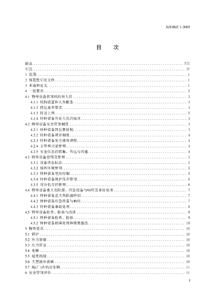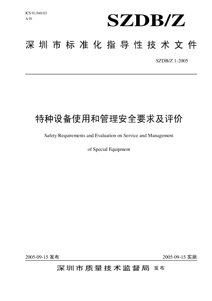 SZDB/Z 1-2005 特种设备使用和管理安全要求及评价