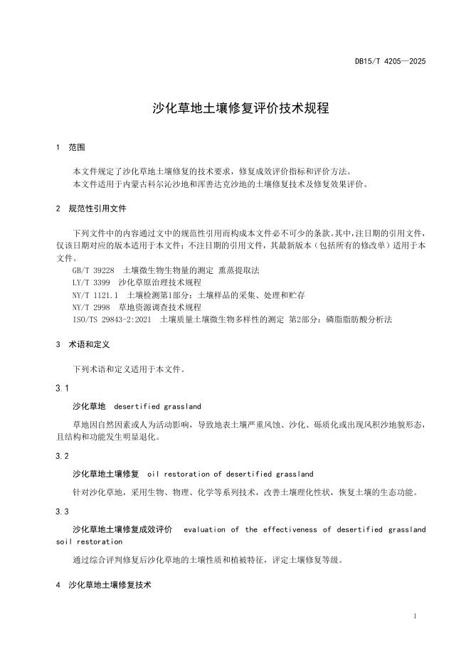 DB15/T 4205-2025 沙化草地土壤修复评价技术规程
