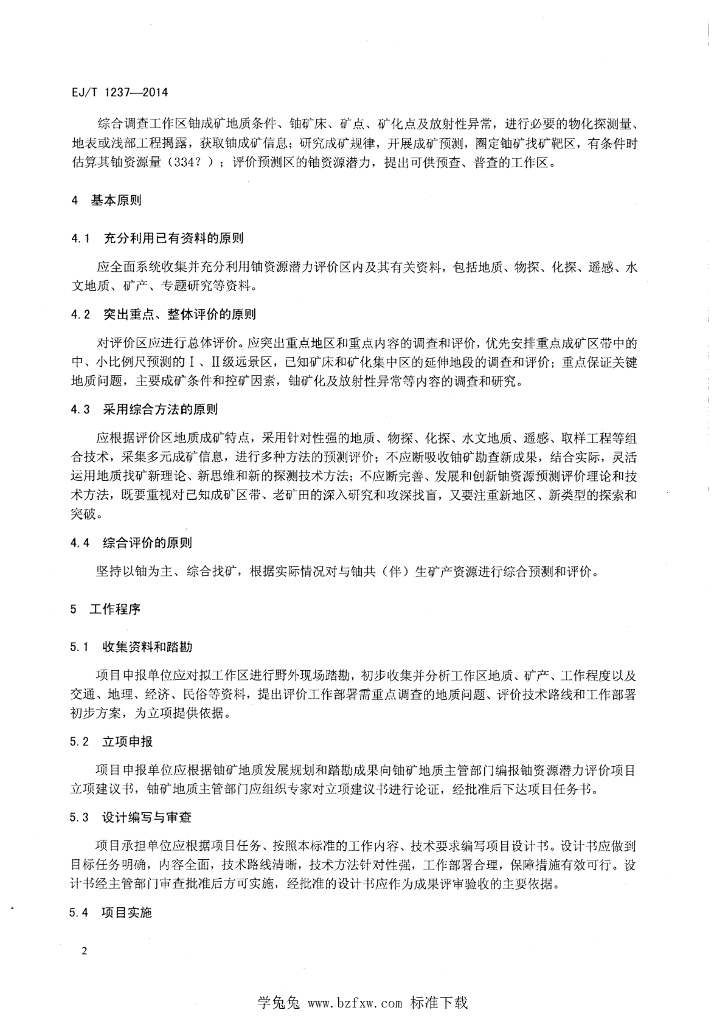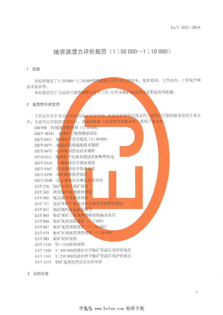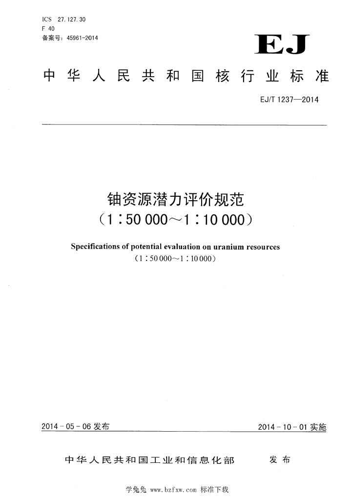 EJ/T 1237-2014 铀资源潜力评价规范(1:50000~1:10000)