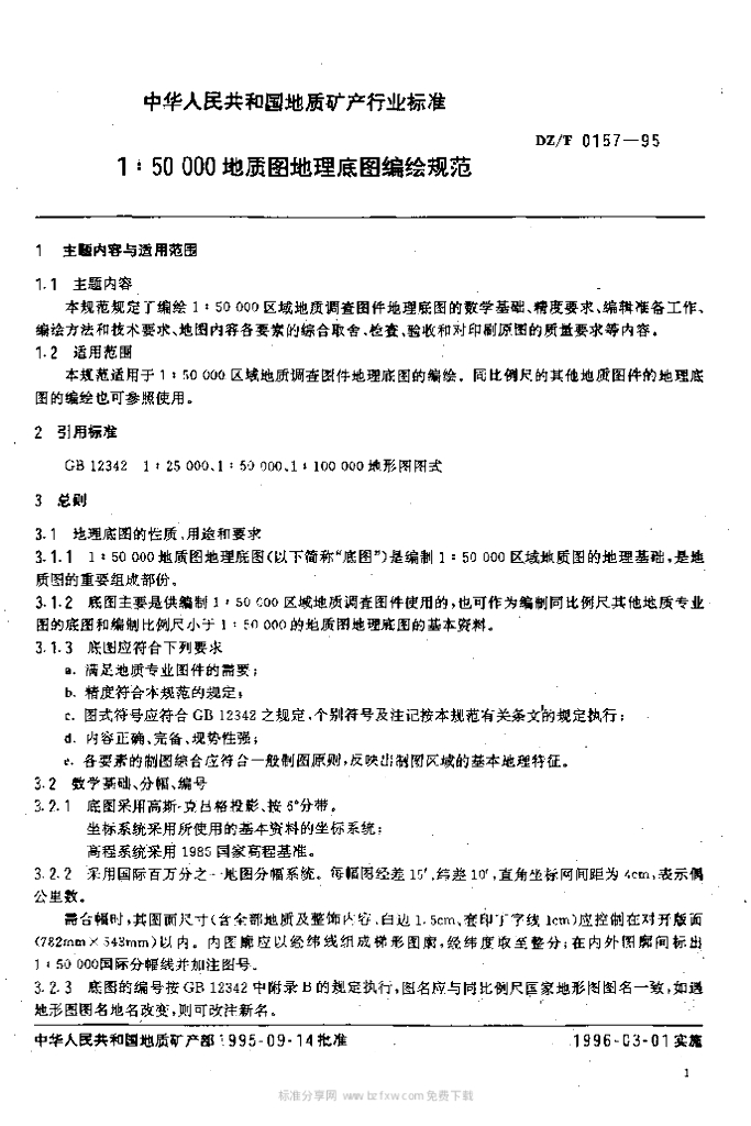 DZ/T 0157-1995 1:50000 地质图地理底图编绘规范