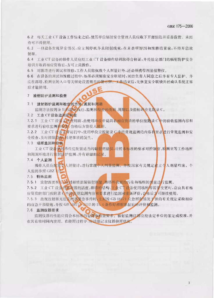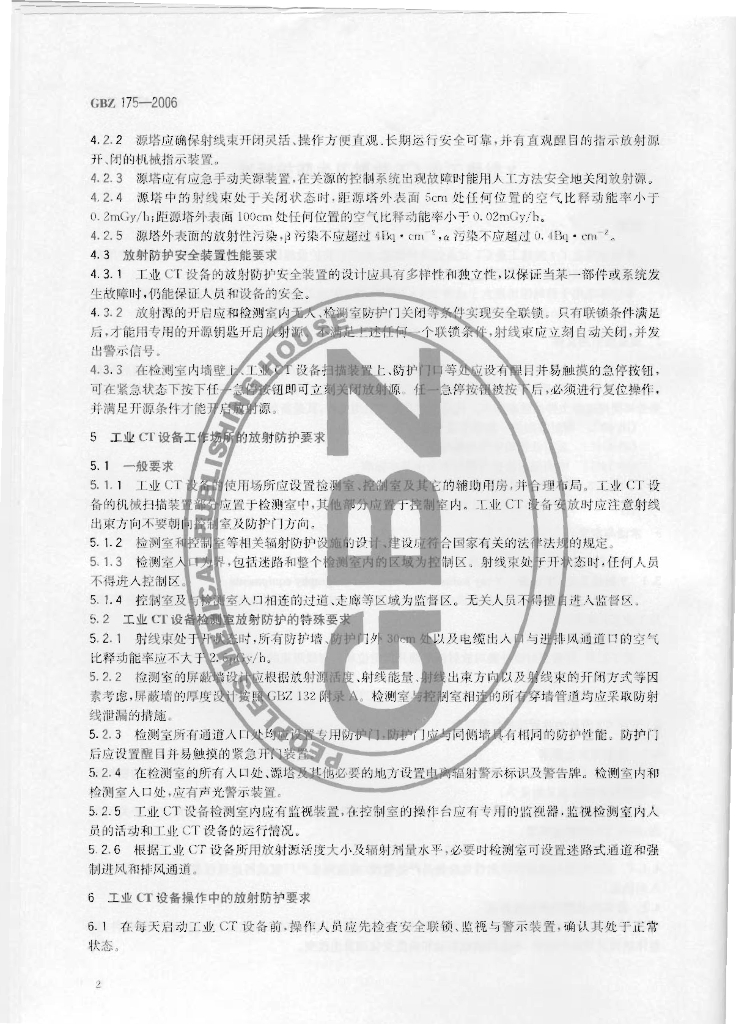 GBZ 175-2006 γ射线工业CT放射卫生防护标准