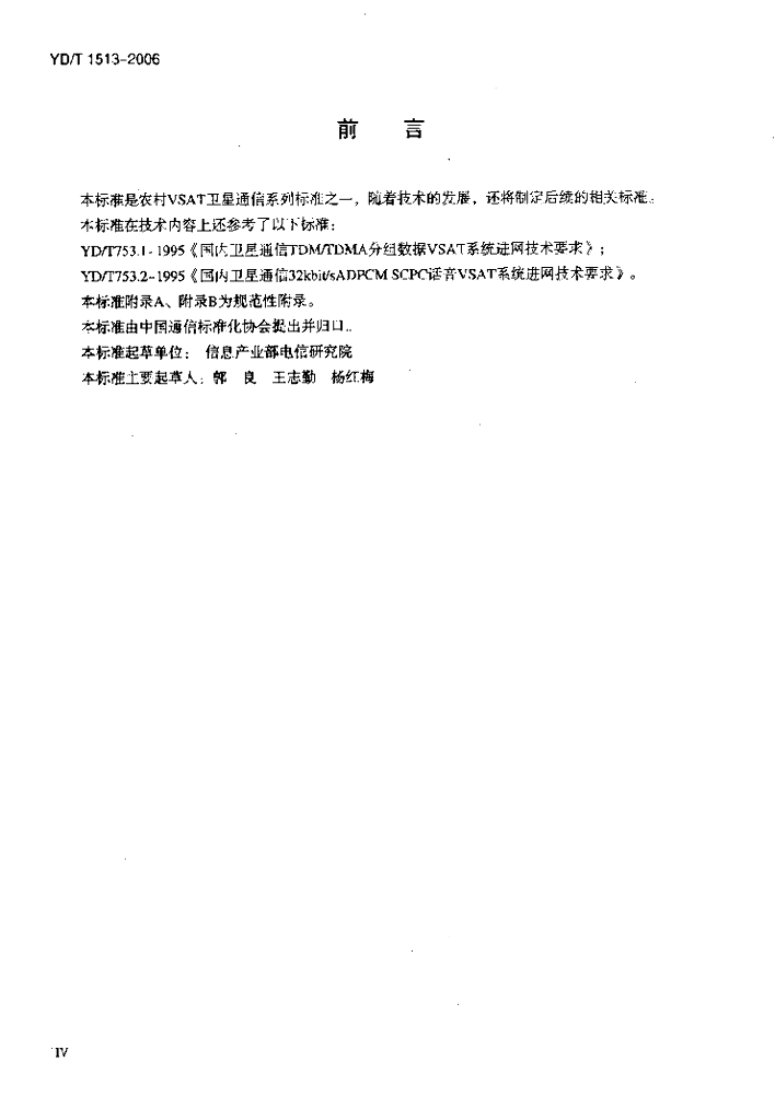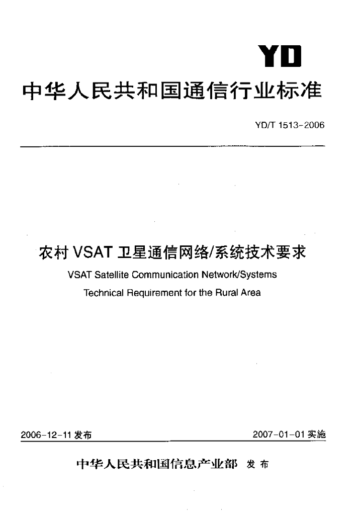 YD/T 1513-2006 农村 VSAT 卫星通信网络/系统技术要求