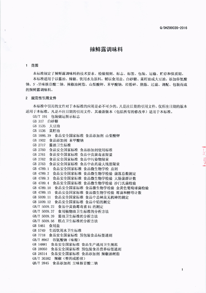 Q/DHZ 0003S-2016 成都大糊子食品有限公司 辣鲜露调味料