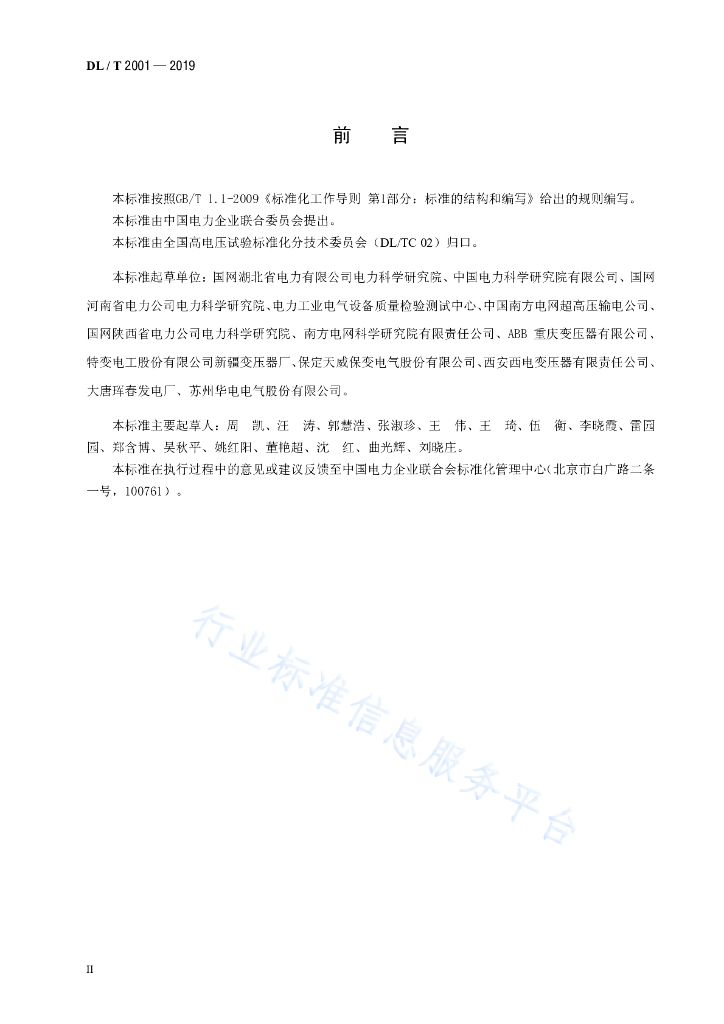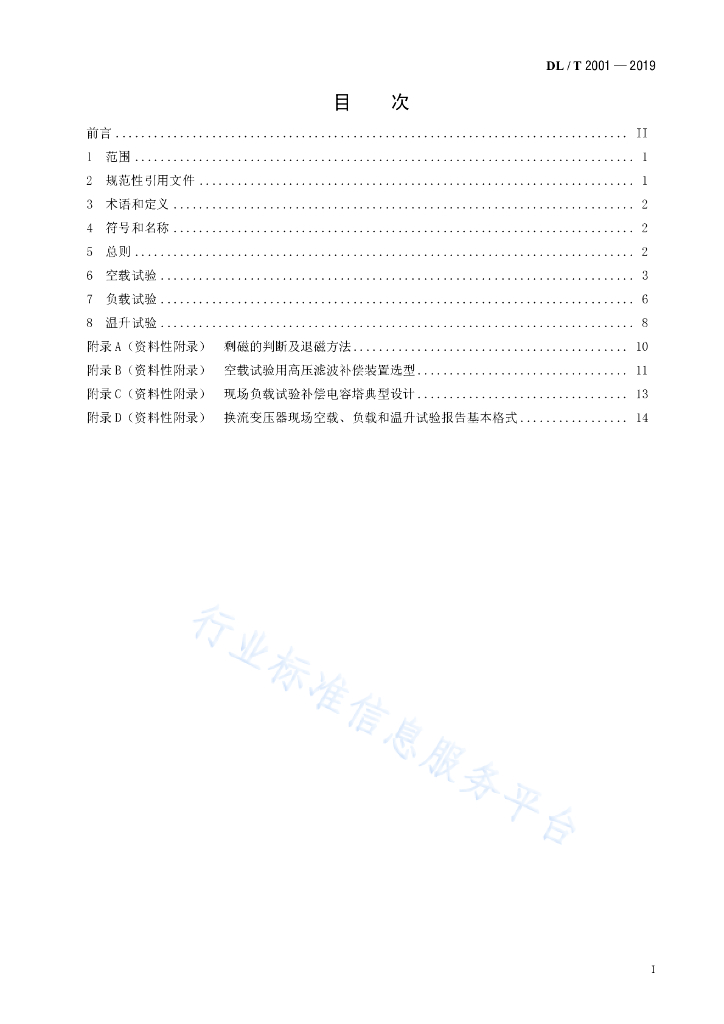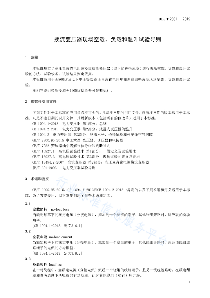 DL/T 2001-2019 换流变压器现场空载、负载和温升试验导则