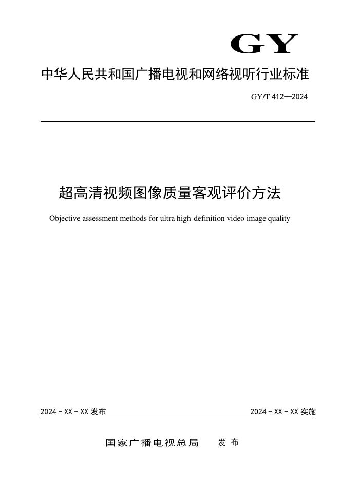 GY/T 412-2024 超高清视频图像质量客观评价方法
