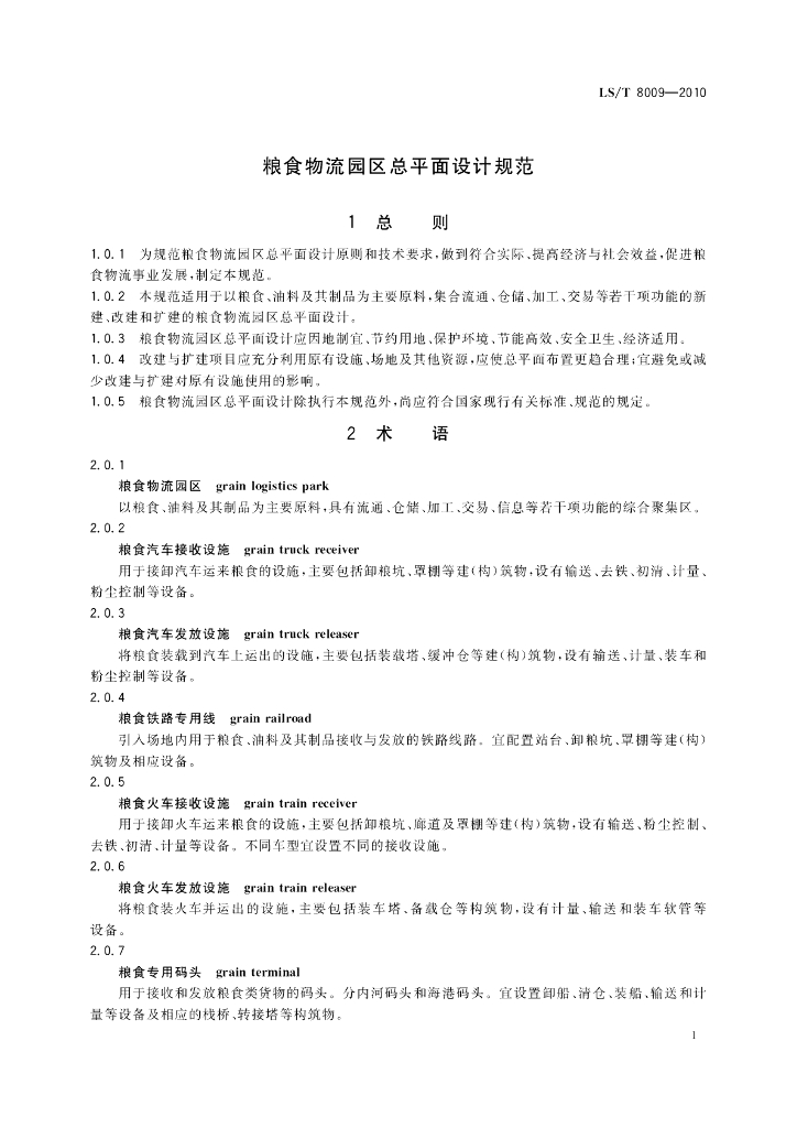 LS/T 8009-2010 粮食物流园区总平面设计规范