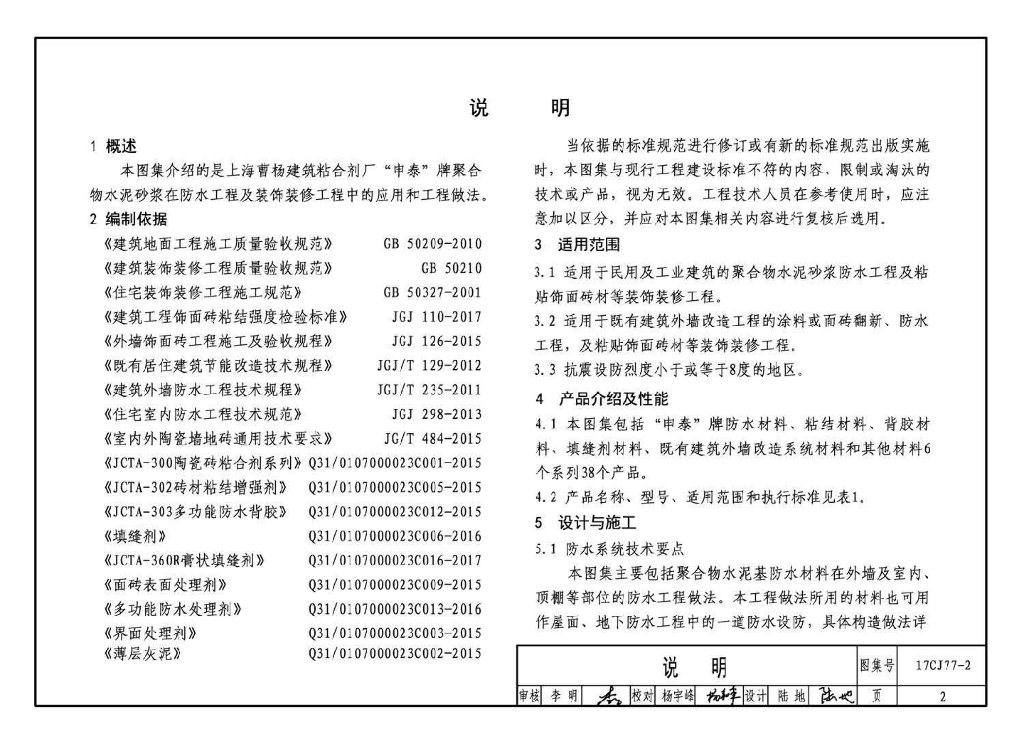 17CJ77-2 聚合物水泥砂浆系统工程做法——“申泰”防水、粘结系统参考图集