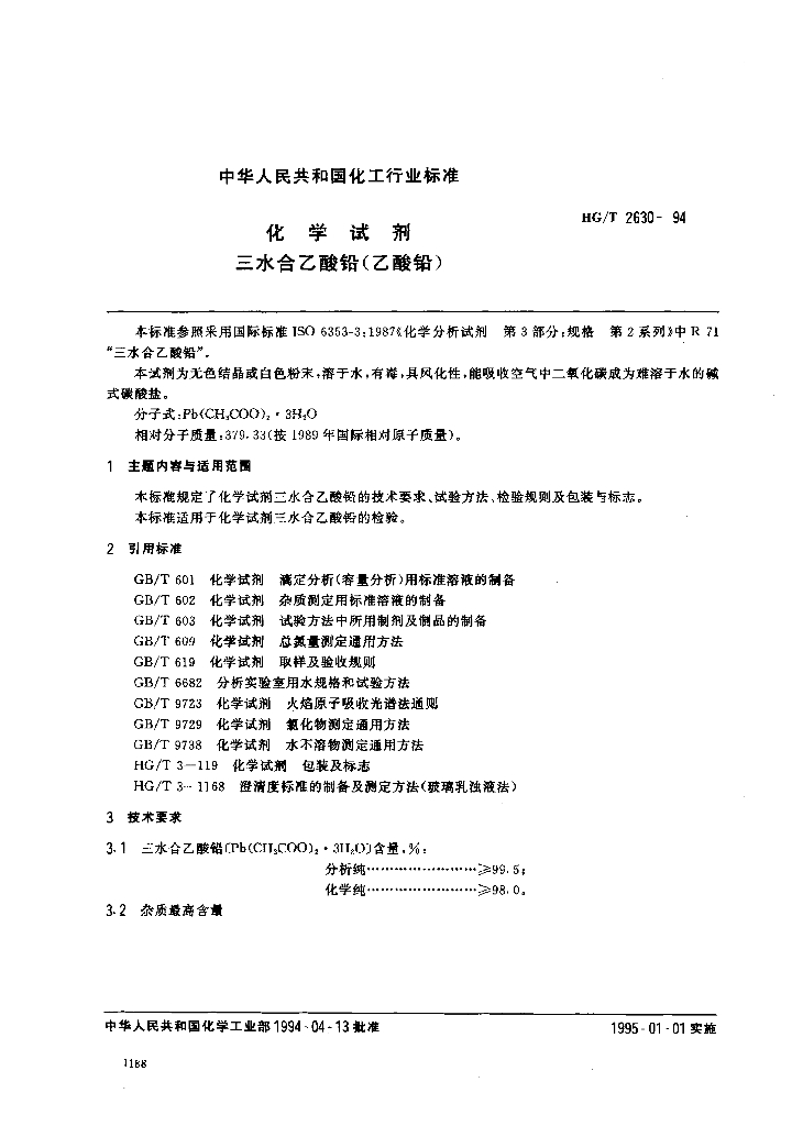 HG/T 2630-1994 化学试剂 三水合乙酸铅(乙酸铅)