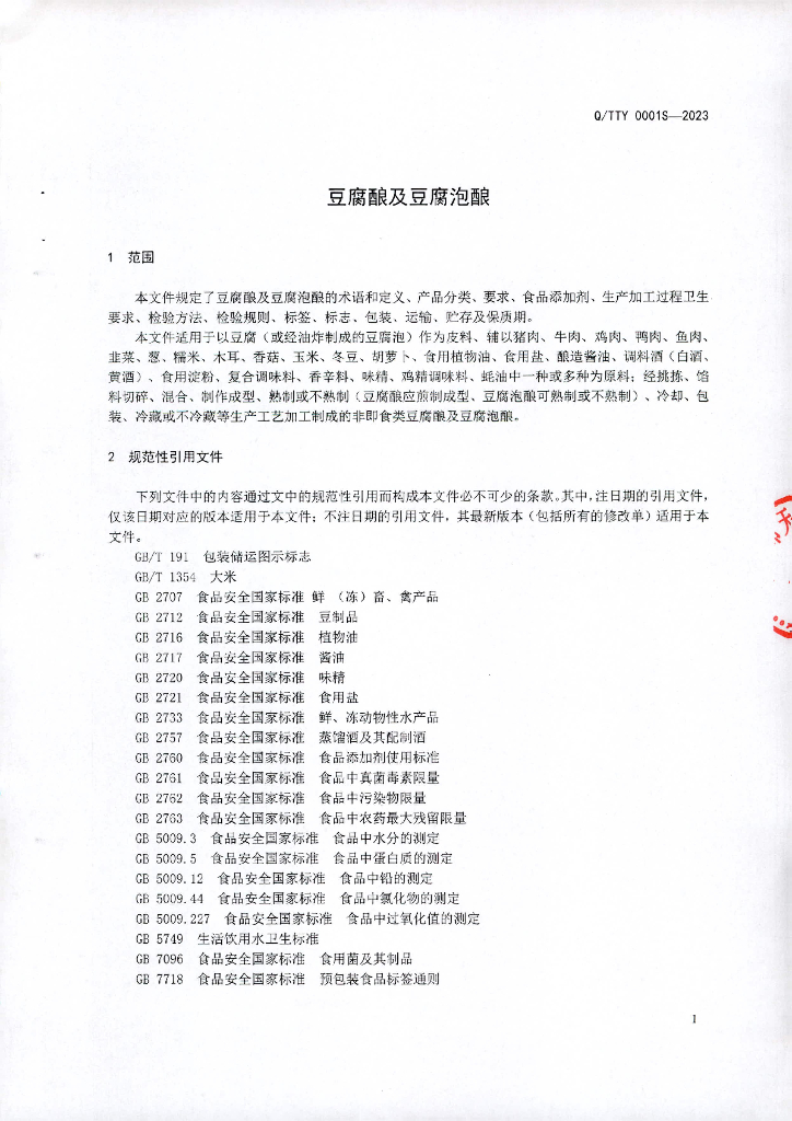 Q/TTY 0001S-2023 豆腐酿及豆腐泡酿