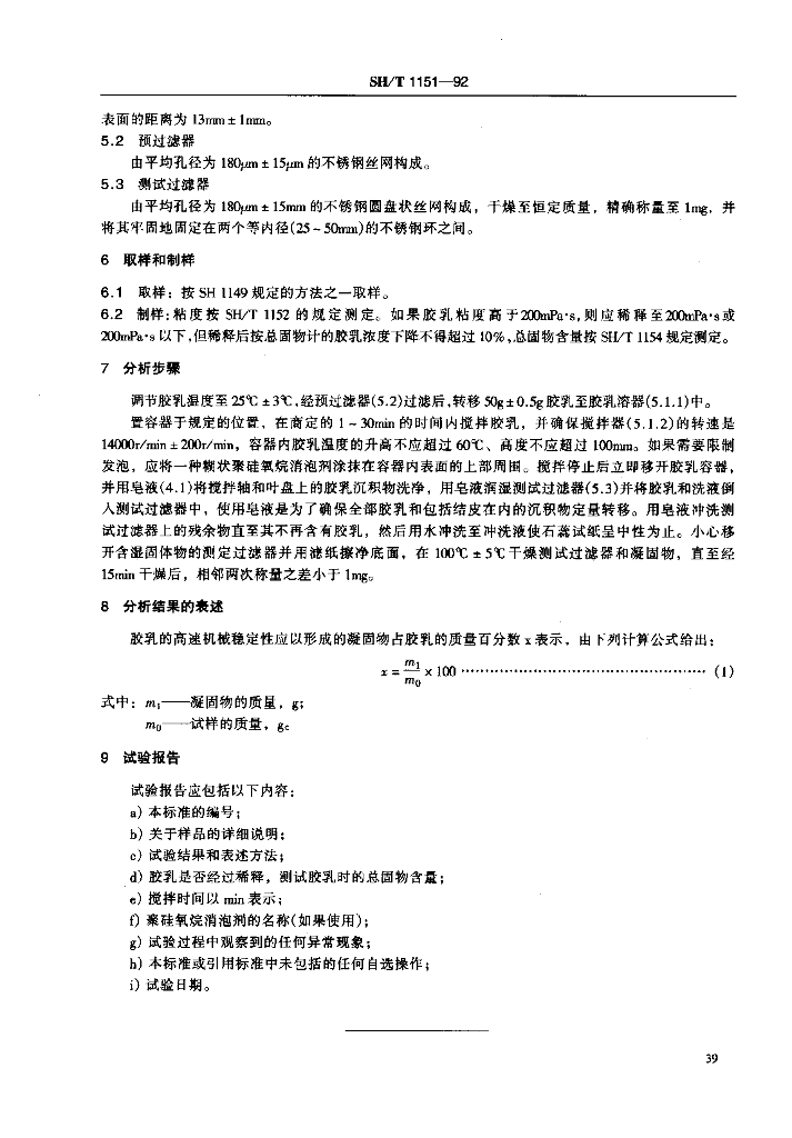 SH/T 1151-1998 合成胶乳高速机械稳定性的测定法
