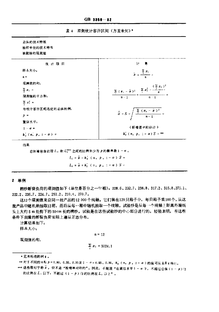 GB/T 3359-1982 数据的统计处理和解释 统计容许区间的确定