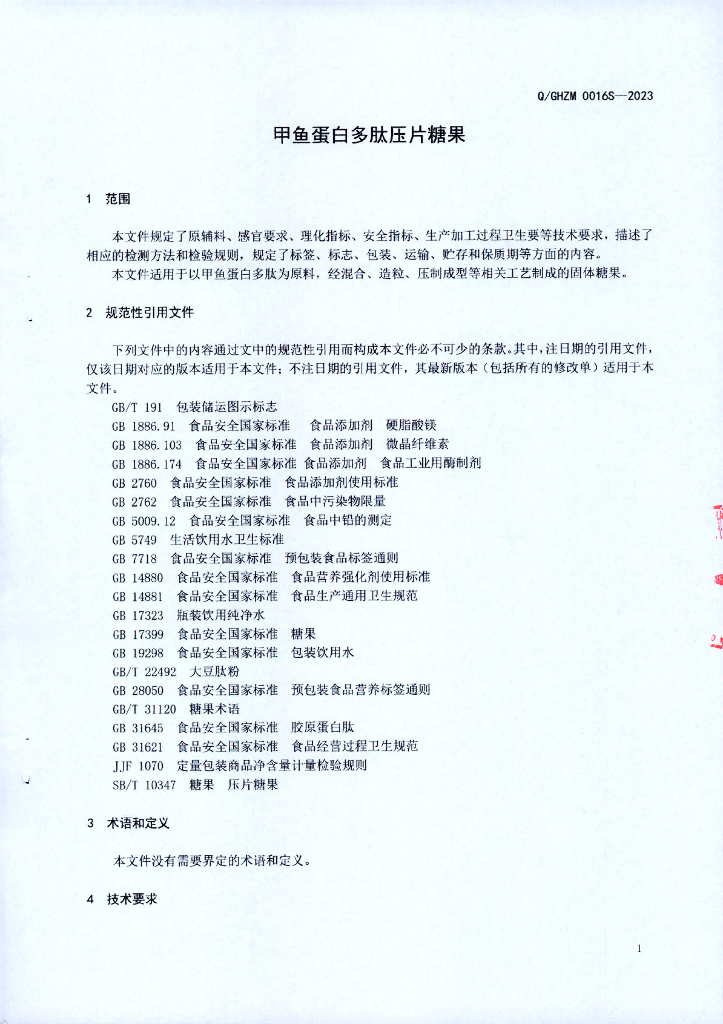 Q/GHZM 0016S-2023 甲鱼蛋白多肽压片糖果