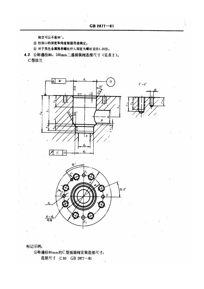 GB/T 2877-1981 二通插装式液压阀安装连接尺寸