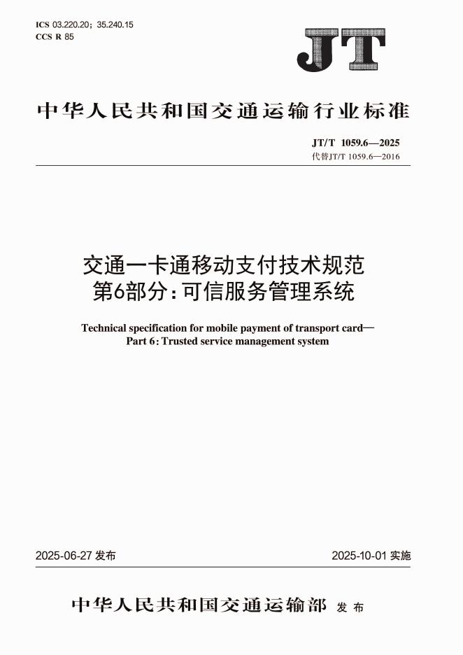 JT/T 1059.6-2025 交通一卡通移动支付技术规范 第6部分:可信服务管理系统