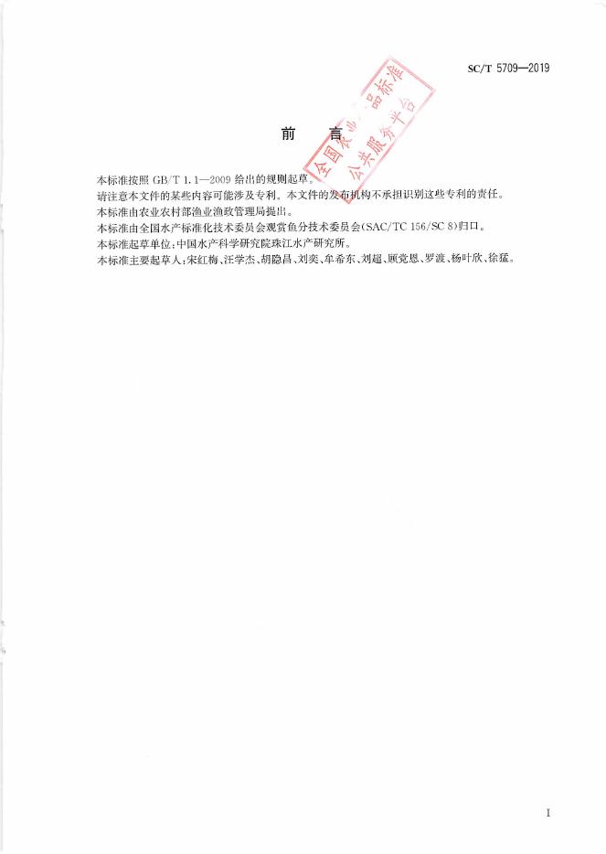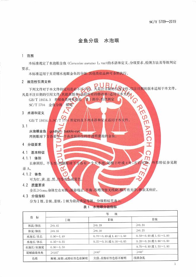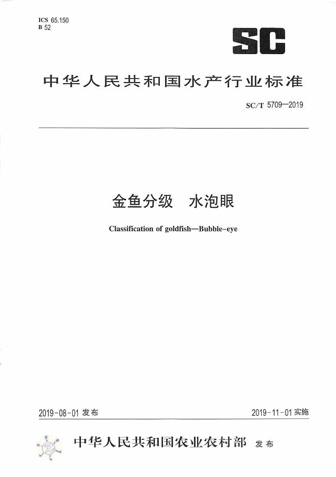 SC/T 5709-2019 金鱼分级 水泡眼