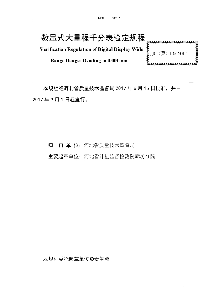 JJG(冀)135-2017 数显式大量程千分表检定规程