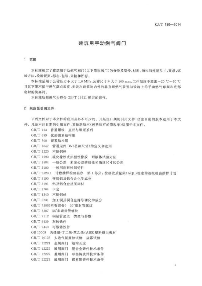 CJ/T 80-2014 建筑用手动燃气阀门