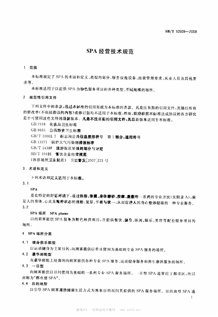 SB/T 10509-2008 SPA经营技术规范